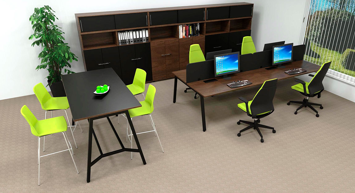 besticht durch seinen Mix aus eleganter Optik und vielfältigen farblichen Gestaltungsmöglichkeiten. Professionell ausgestattete Arbeitsplätze mit A-Fuß-Gestell schaffen eine individuelle Raumgestaltung. Ob Schreibtische in Rechteckform oder Bench-Lösungen. Die modernen Oberflächenfarben sorgen für einen frischen Wind in Ihrem Büro. Eleganten Chic erhalten Sie im Stauraumbereich, hier können Sie zusätzlich kreative Akzente setzen. Dank des umfangreichen Typenplans können Sie die Büromöbel fast endlos kombinieren. So erhalten Sie professionelle und ergonomische Arbeitsplätze, sowie Roll-Container und Korpus-Möbel – zu überzeugend günstigen Preisen.