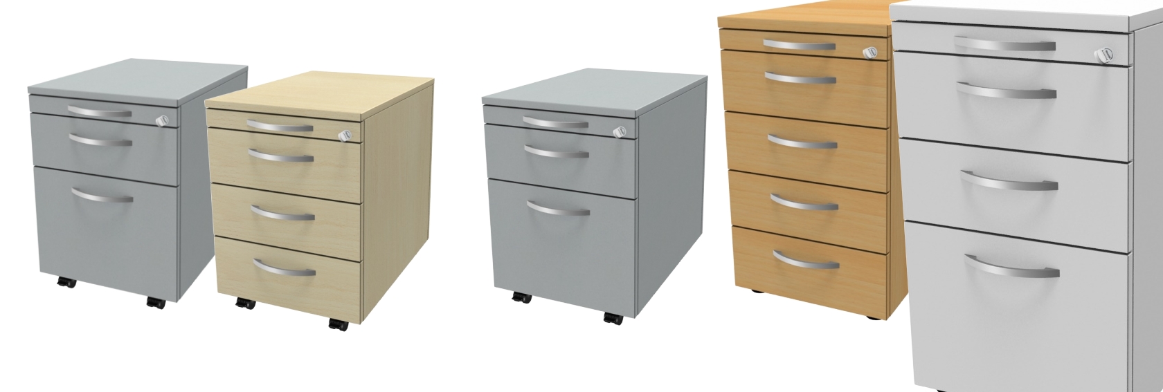 Auf unserer Homepage und in unseren Ausstellungen – 8x in Deutschland – finden Sie viele unterschiedliche hochwertige Rollcontainer für Ihr Büro, denn Gestaltungsvielfalt wird bei uns großgeschrieben. Wenn Sie klassische Container mit Rollen in Buche-, Ahorn- Nachbildung oder weiß suchen, dann werden bei uns fündig.