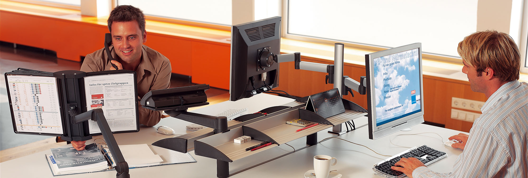 Die Schreibtisch Ordnung - Zur ergonomischen Büroausstattung gehören auch Bildschirmträger und Monitorarme